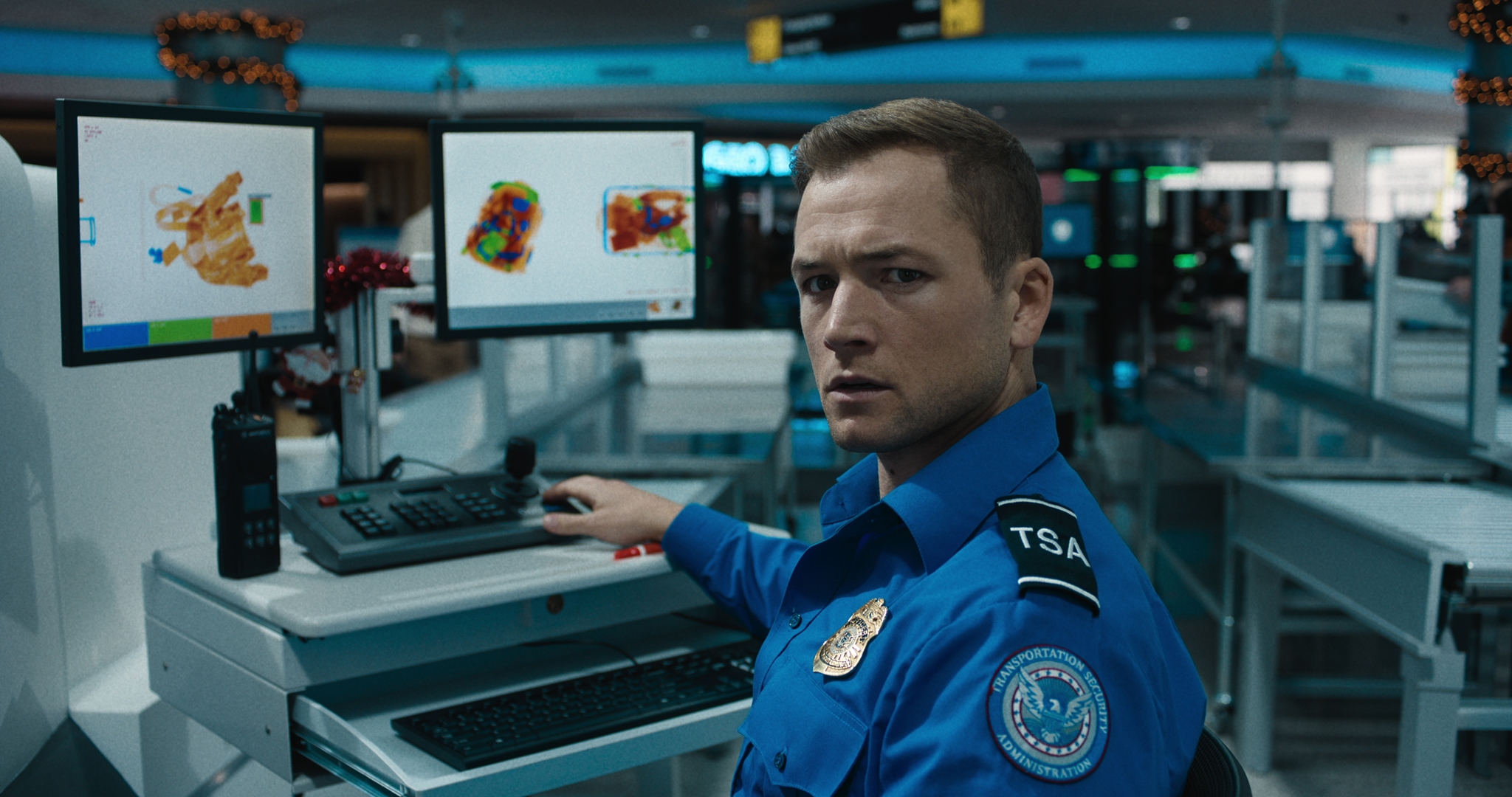 The film follows Ethan Kopek (Taron Egerton), a frustrated TSA officer who was rejected from the police academy after lying on a polygraph about witnessing a crime connected to his father. Now stuck in a dead-end routine and preparing for life with his pregnant girlfriend, Nora (Sofia Carson), Ethan’s world is upended on Christmas Eve when a mysterious man known only as the “Traveler” (Jason Bateman) gives him a chilling ultimatum: let a specific bag through airport security, or Nora will be killed. Under constant surveillance from an accomplice known as the “Watcher” (Theo Rossi) and unable to trust anyone around him, Ethan is thrust into a deadly cat-and-mouse game inside a bustling airport terminal.