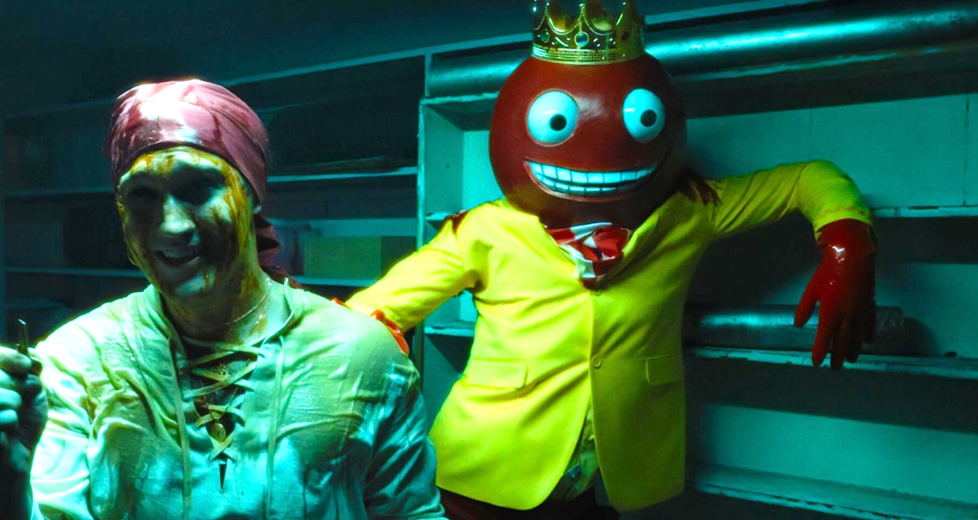 Take “Fun Size,” for instance, the new segment in V/H/S Halloween from writer-director Casper Kelly wherein adults go trick-‘r-treating in full-costume, and two of them speak to the irony-poisoned moment of Gen-Z while dressing as “Found Footage Filmmakers.” As the unsuspecting victims of the most comical of the new V/H/S segments, these cats wind up bedeviled by what Kelly gleefully describes as Willy Wonka but in Hell.