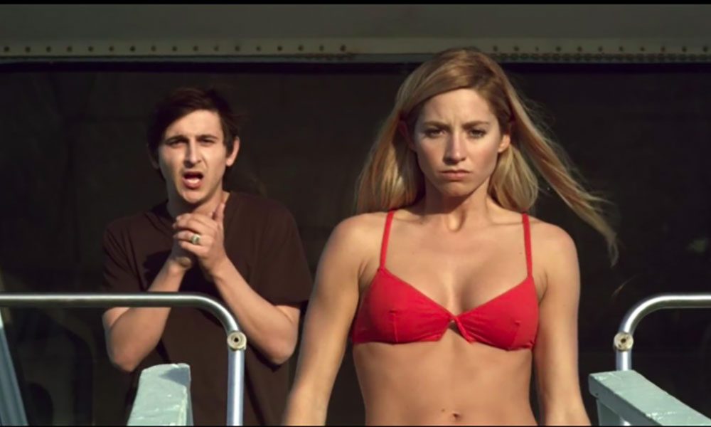 The movie starts with a bunch of douchebag college students throwing a beach bash, montage-style. It somehow makes every partygoer detestable. They motivate me to yell at clouds and hike my pants up to my chin.