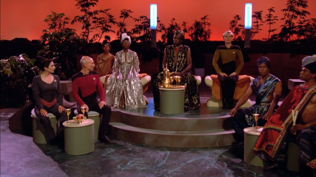 Title: Airdate: 10/12/1987 Plot Summary The Enterprise arrives at a planet where they have a vaccine that is desperately needed by another colony. Lutan, the leader of the people has the vaccine but there is a lot of protocol and honor and well… hoops the crew has to jump through